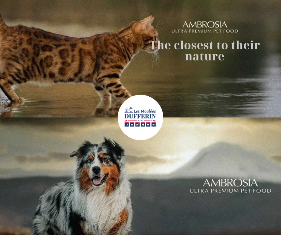 Sur place, les nouveaux clients sont souvent surpris de découvrir la grande variété des produits of ferts par Les Moulées Dufferin. En effet, en plus de se spécialiser dans les secteurs équin et bovin, notre commerce propose aussi de la nourriture et des accessoires pour les animaux de compagnie.